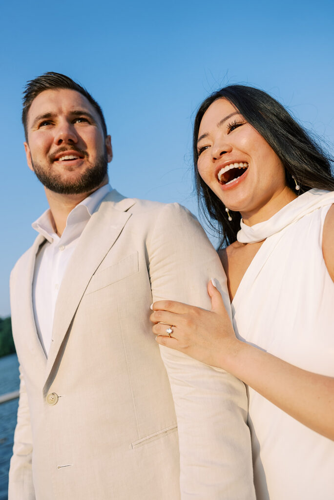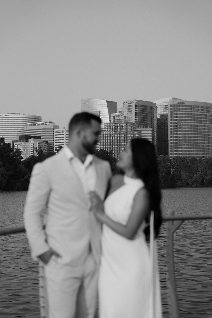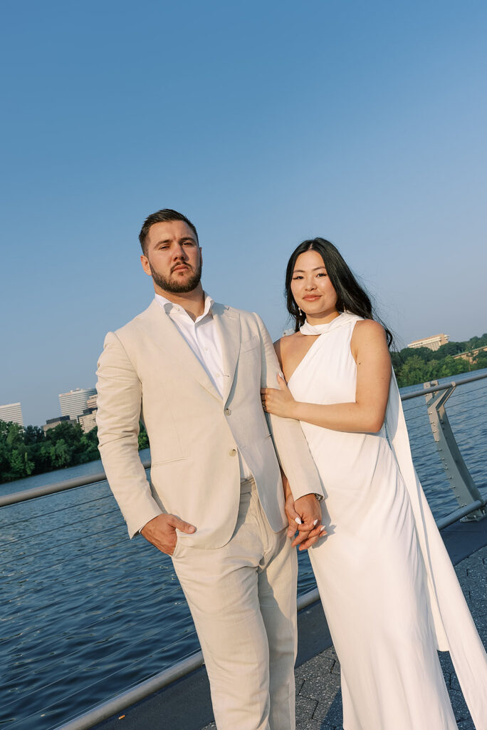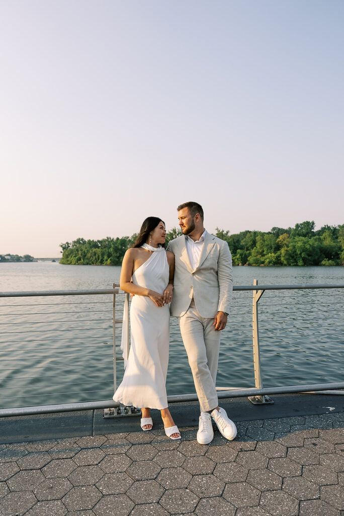 The light here felt clean and summery, and the open backdrop gave the first part of the session a fresh, airy look. For couples planning their Washington DC engagement photos, the waterfront is such a strong starting point because it brings in a more relaxed energy while still feeling distinctly Georgetown.