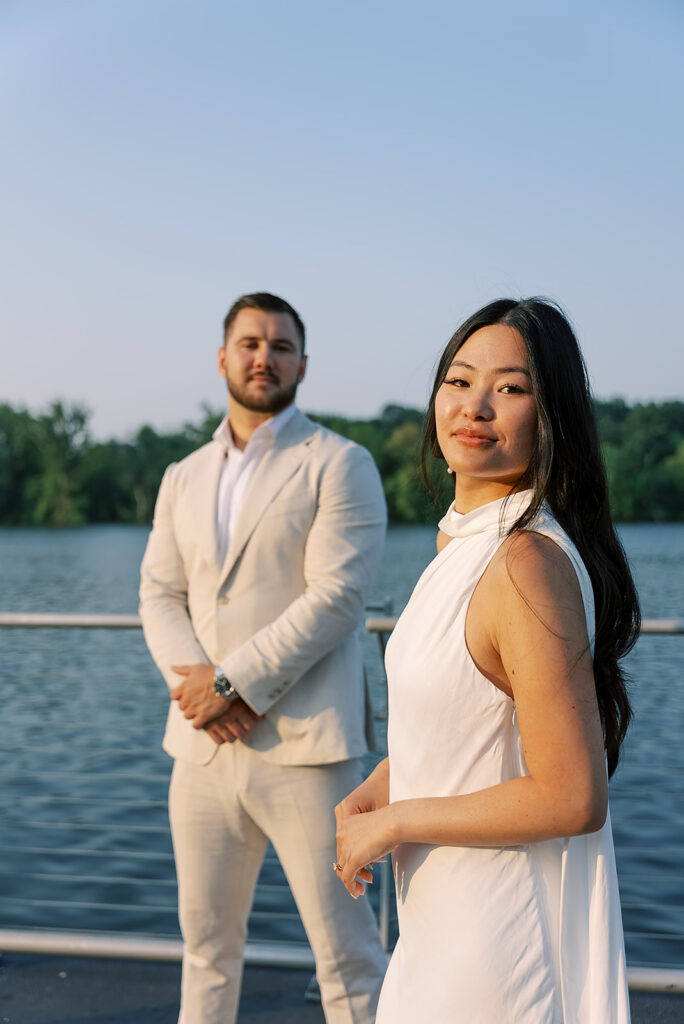 It’s also perfect for couples who want a mix of movement and romance in their gallery. Whether you’re walking hand in hand along the water, leaning into each other with the city behind you, or simply taking a quiet moment together, the waterfront adds that sense of ease that makes photos feel genuine.