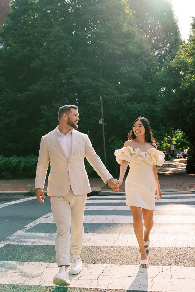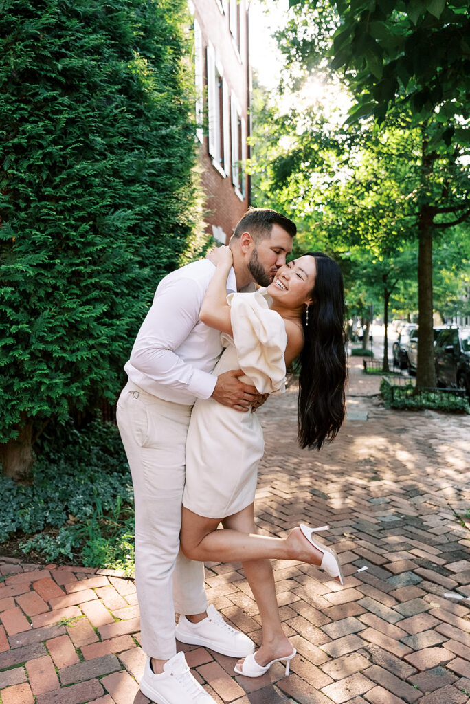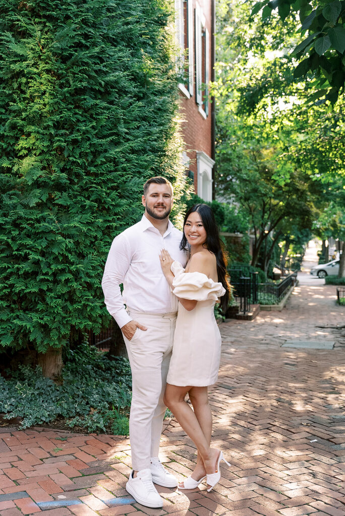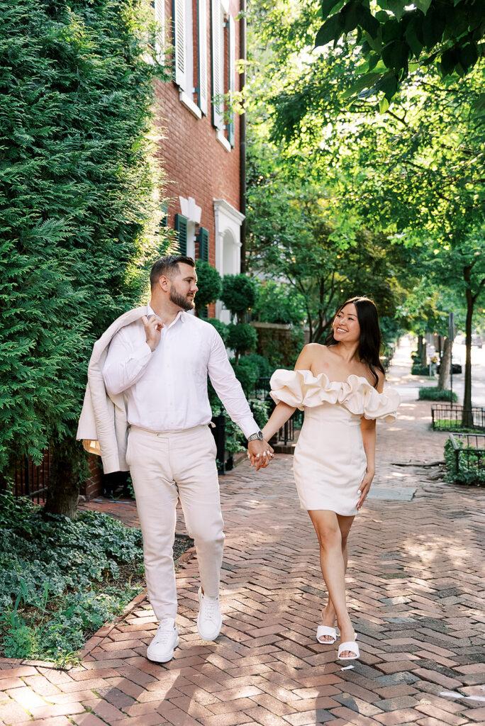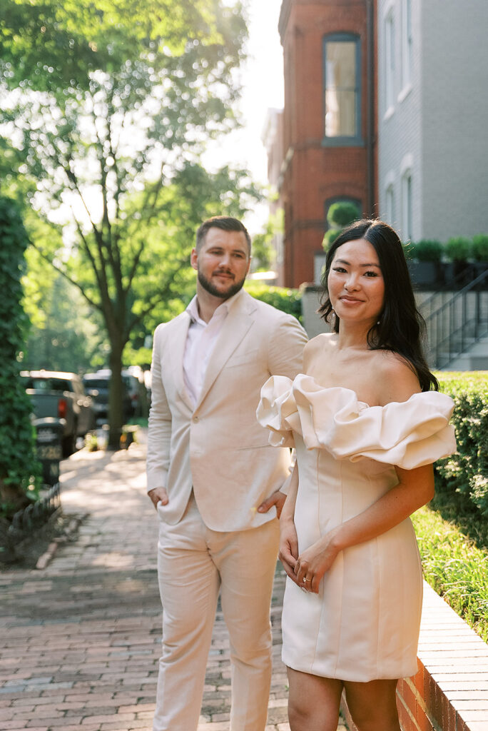 This part of the session is especially ideal for couples who want their photos to look natural and stylish without feeling overly posed. The row houses, greenery, and tucked-away corners give us plenty of variety while keeping the overall look cohesive. It’s one of the reasons Georgetown is such a dream location for engagement photos in Washington DC.