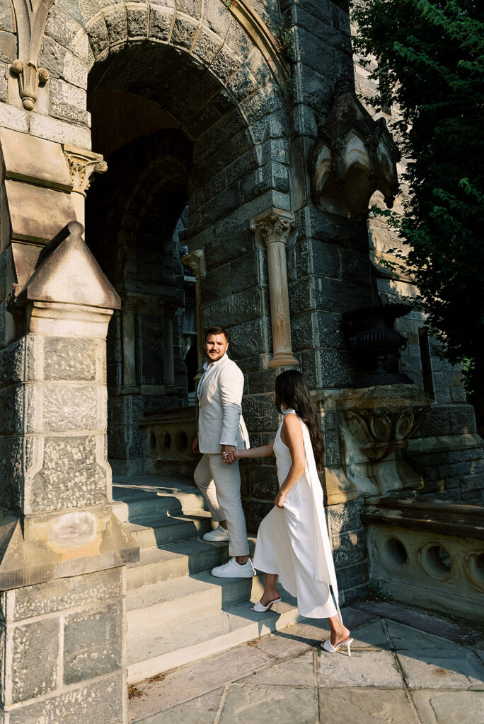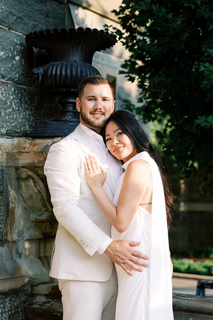 The architecture on campus brings a completely different mood to the gallery — more historic, iconic, and romantic. The stone buildings and grand staircases gave this part of the session a timeless feel that paired beautifully with the softness of the earlier waterfront and neighborhood portraits.