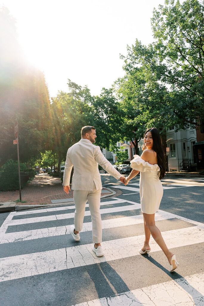 The tree-lined streets, brick sidewalks, and historic row houses create the kind of setting that feels both charming and refined. If you love the idea of neighborhood-style engagement photos that still feel elevated, Georgetown is one of the best places in Washington, DC for that balance.